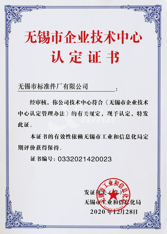 2020年12月公司獲評“無錫市企業(yè)技術中心”